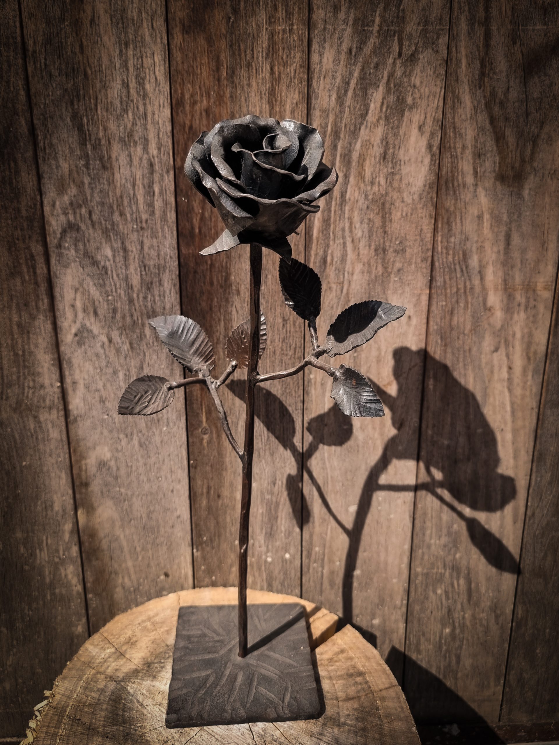 A Rosa de forja amb tija (sense fulles), B Rosa de forja amb tija i suport base (sense fulles), C Rosa de forja amb tija i fulles, D Rosa de forja amb tija, fulles i suport base
